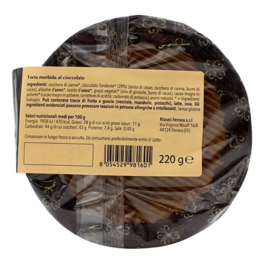 Offelleria Ferrara Tenerina morbida al cioccolato. Torta tenerica biologica, formato da 220 gr.