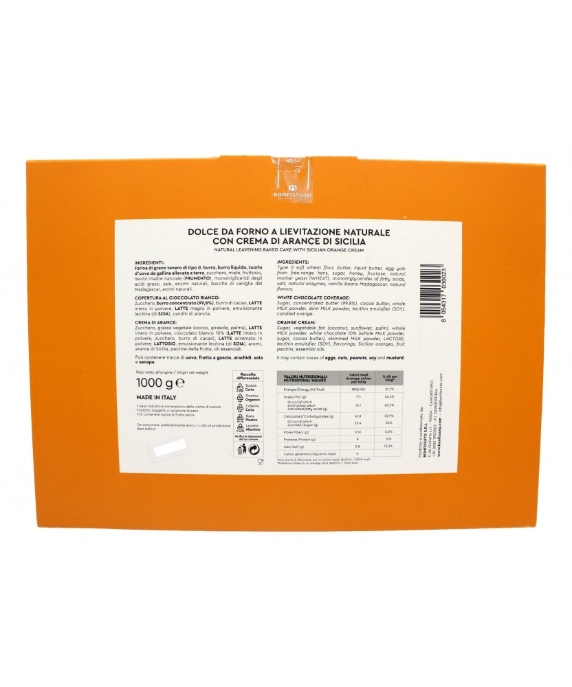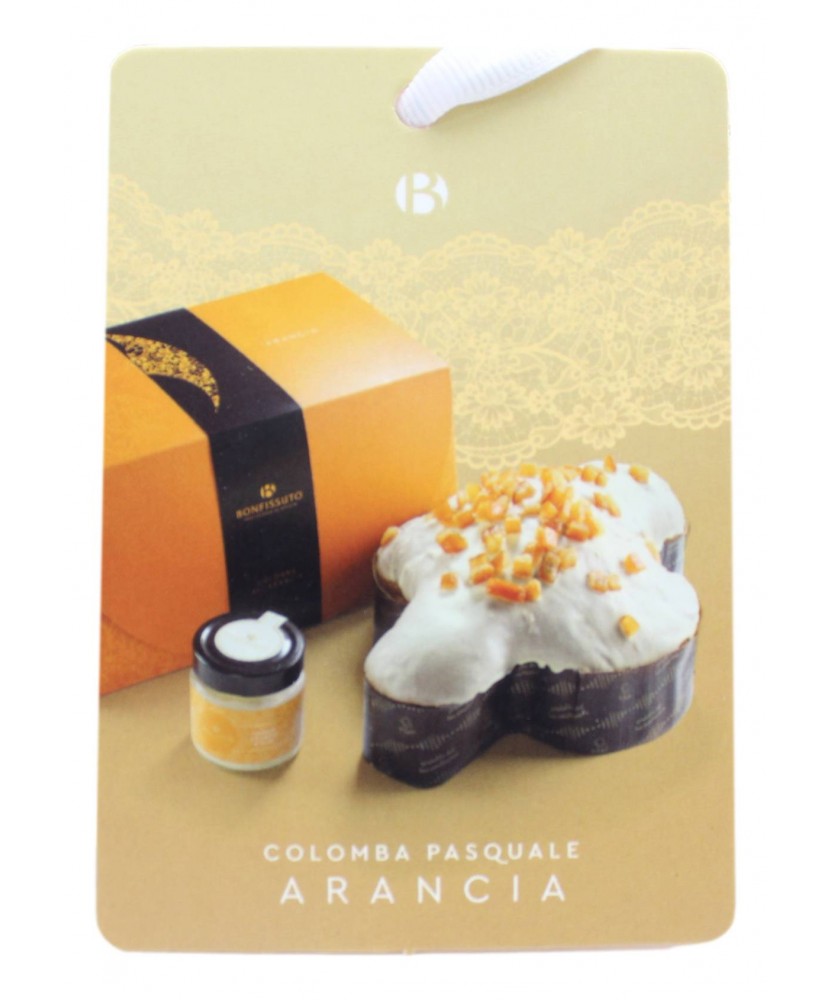 Bonfissuto Colomba con arance candite e una copertura di cioccolato bianco. Incluso un vasetto di crema di arance di Sicilia da spalmare (200 gr). Colomba di Pasqua da 1 Kg in scatola regalo, Bonfissuto pasticceria di Sicilia. Bonfissuto utilizza i prodotti d’eccellenza del territorio siciliano con i quali produce prodotti inconfondibili per originalità, gusto e presentazione.