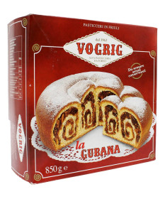 L’antica ricetta della Gubana tramandata nel tempo è fedelmente riprodotta da Vogrig con pasta lievitata dolce, avvolto a mano su se stesso per assumere la tipica forma a spirale, contiene al suo interno un ricco ripieno di nocciole tritate, noci, uvetta, pinoli. In totale gli ingredienti sono 19, amalgamati con saggezza antica. La Gubana, che richiede tre giorni di lavorazione per essere preparata, viene lasciata salire fino a raggiungere il volume classico, quindi posto nel forno. La cottura avviene a temperatura moderata per circa cinquanta minuti. Assolutamente privo di coloranti e conservanti mantiene inalterata la fragranza e la bontà per mesi, se conservato in luogo fresco e asciutto.