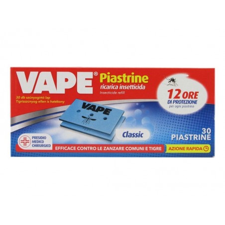 Le piastrine antizanzare di Vape sono un utile rimedio contro le zanzare comuni e le zanzare tigre, sia in casa sia all'aperto. Ogni piastrina offre una protezione costante di 12 ore. Quando la piastrina cambia colore si è esaurita la sua attività insetticida.