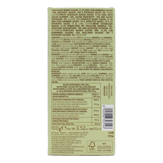 VENCHI TAVOLETTA CHOCOVIAR CON PISTACCHI INTERI E TOSTATI 200 GR