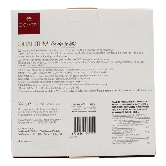 DOMORI QUANTUM MAXI TAVOLETTA FONDENTE 68% 500 GR