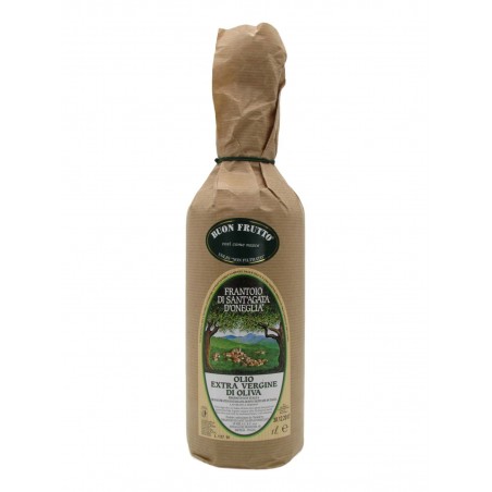Olio extravergine d’oliva Buon Frutto, prodotto dal Frantoio di Sant’Agata d’Oneglia, formato da 1 LT. Un olio dedicato all'uso in cucina un extra vergine 100% Italiano, lavorato a freddo. Ottimo rapporto qualità/prezzo. Acidità inferiore allo 0,3%. Questo’olio proviene dalla lavorazione a freddo di olive in prevalenza taggiasche, raccolte con leggero anticipo rispetto alla completa maturazione. Alla vista offre un aspetto velato, all’olfatto un profumo di frutto fresco e al palato un sapore rotondo, leggermente fruttato.