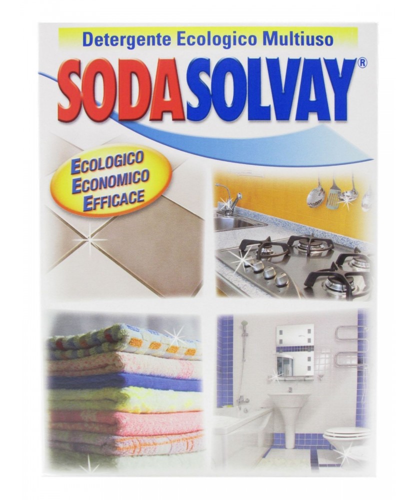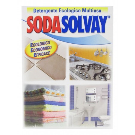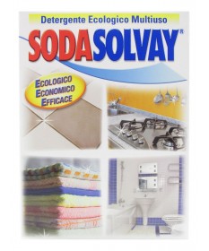 SodaSolvay è un detergente ecologico multiuso, nello specifico carbonato di sodio con una purezza superiore al 99%. E’ un eccellente sgrassante, non fa schiuma e non ha profumo. Utilizzabile per il bucato, su superfici lavabili di cucina e bagno, per le stoviglie, sui pavimenti, per le bottiglie.