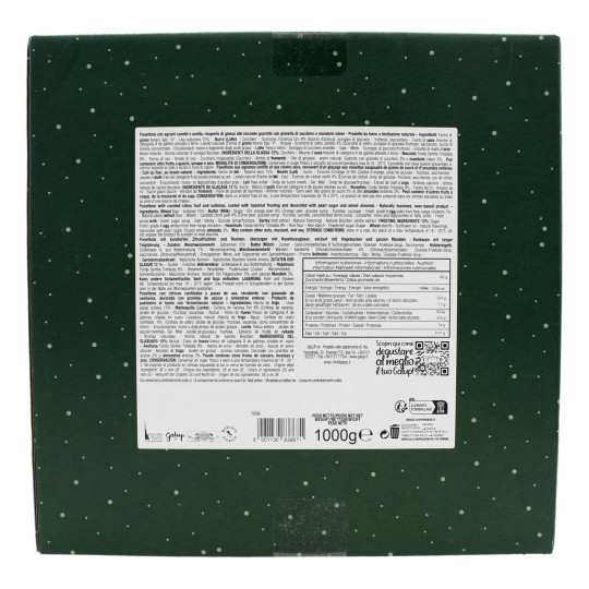 Panettone Gran Galup tradizionale, la ricetta originale con canditi freschi e uvetta di primissima scelta. Guarnito con nocciola Tonda Gentile Trilobata, arricchita da mandorle intere tostate e granella di zucchero. Prodotto Made in Italy.
