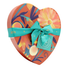 Cofanetto a forma di cuore con cioccolatini Venchi assortiti. Elegante scatola regalo della collezione Flora, un perfetto regalo natalizio, gustoso ed elegante! All’interno una selezione speciale: Chocoviar Crème Pistacchio, Chocoviar 75%, Granblend Fondente e Menta, Grablend Nibs 75%, Cremino 1878, Cremino Pistacchio, Cremino Extra Fondente, Nougatine, Gianduiotto Gianduia n.3, Lingottino Nocciolato Fondente, Gianduiotto Fondente Ripieno, Lingottino Nocciolato Latte, cioccolatino Tiramisù, Perla Nocciola & Gianduia Latte, Perla Nocciola & Gianduia Fondente, Granblend Sud America 80%, Granblend Sud America 100%, Cremino Fondente con -70% di zuccheri rispetto alle ricette Venchi standard, Perla Pistacchio Salato, Matcha, Cioccofrutto Arancia, cioccolatino Caffè, Chocoviar Crème Brulée e Chocoviar Crème Suprema.