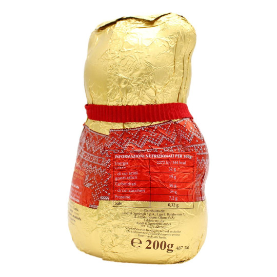 Lindt orsetto di cioccolato al latte con maglione natalizio disegnato, colorazione esterna casuale verde o rossa. Orsetto da 200 gr, il modo più buono per dire a qualcuno ti voglio bene. Lindt, il cioccolato che si scioglie in bocca.