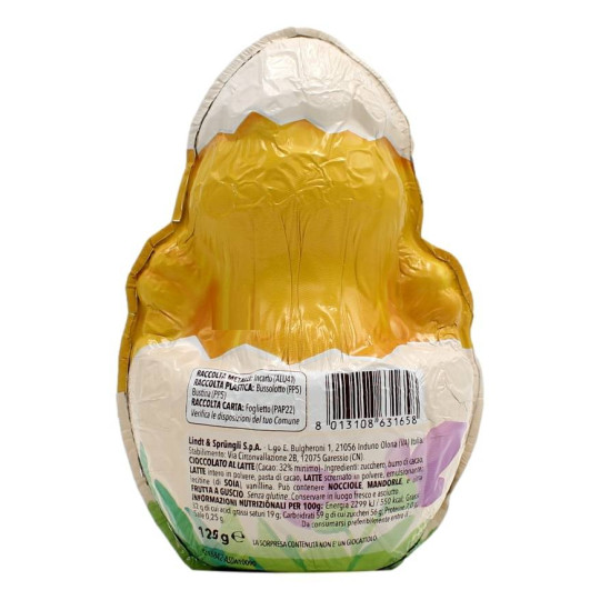Pulcino di cioccolato al latte, confezione da 120gr. Caffarel è la cultura torinese del cioccolato e inventore del gianduiotto. Nata da quasi 200 anni, nel lontano 1826, Caffarel utilizza da sempre finissimo cioccolato e le migliori nocciole, il cacao arriva da Ecuador e Ghana.