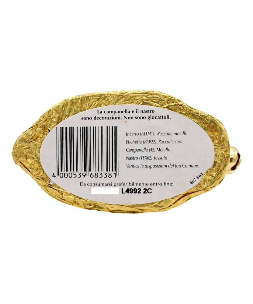 Ingredienti: Cioccolato al latte. Ingredienti: zucchero, burro di cacao, LATTE intero in polvere, pasta di cacao, LATTOSIO, LATTE scremato in polvere, emulsionante (lecitina di SOIA), estratto di malto d’ORZO, aroma. Può contenere NOCCIOLE ed altra FRUTTA A GUSCIO. Cacao: 30% minimo.; Sostanza secca del latte : 14% minimo.
