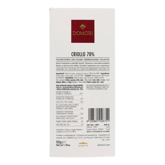 DOMORI TAVOLETTA CRIOLLO FONDENTE 80% 50 GR