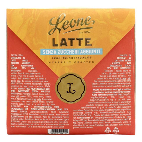 LEONE TAVOLETTA AL LATTE SENZA ZUCCHERI AGGIUNTI 70 GR
